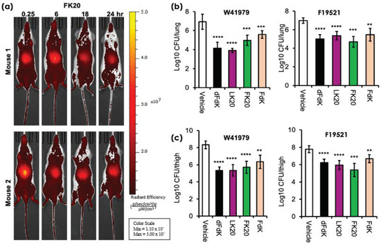 4.5. Mouse In Vivo Imaging and Infection Studies
