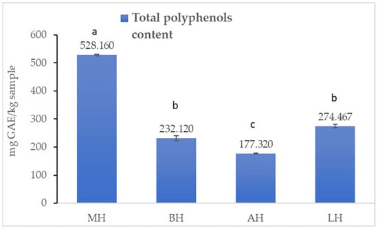 The content of total polyphenols in the studied samples is shown in Figure 1.