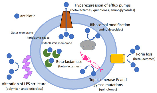 - Karakonstantis, S.; Kritsotakis, E.I.; Gikas, A. Treatment options for K. pneumoniae, P. aeruginosa and A. baumannii co-resistant to carbapenems, aminoglycosides, polymyxins and tigecycline: An approach based on the mechanisms of resistance to carbapenems. Infection 2020, 48, 835–851. [Google Scholar] [CrossRef]