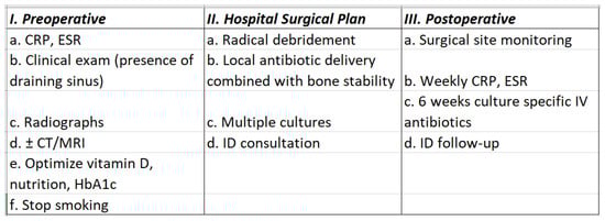 - Cierny, G., 3rd; Mader, J.T.; Penninck, J.J. A clinical staging system for adult osteomyelitis. Clin. Orthop. Relat. Res. 2003, 414, 7–24. [Google Scholar] [CrossRef] [Green Version]