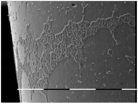 In vitro colonization of metal oral piercing with Candida albicans. SEM picture [6].