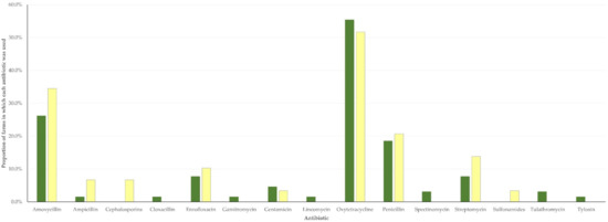 Despite the importance of small ruminant farming for the food production sector in Greece, the patterns of usage of antibiotics on the farms in cases of infections have not been investigated and described. However, there is scope for monitoring their usage, as recent investigations have highlighted the presence of bacterial resistance to antibiotics [6,7]. Moreover, potential associations of antibiotic administration with farm-related factors have not been reported.