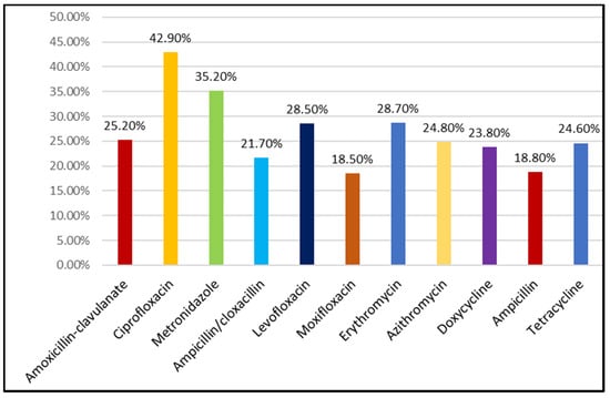 - Michaelidou, M.; Karageorgos, S.A.; Tsioutis, C. Antibiotic Use and Antibiotic Resistance: Public Awareness Survey in the Republic of Cyprus. Antibiotics 2020, 9, 759. [Google Scholar] [CrossRef] [PubMed]