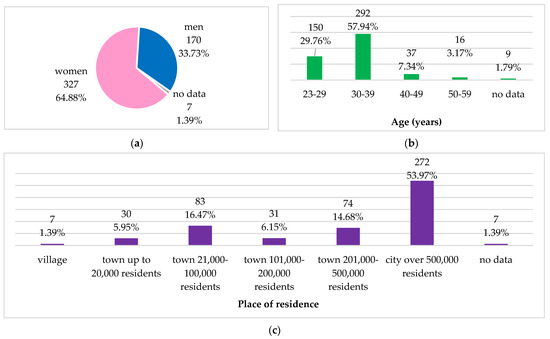 Demographic characteristics of the study group: (a) gender; (b) age groups; (c) place of residence.
