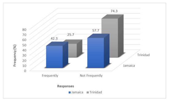 Our study indicated that, the percentage of veterinarians employing antimicrobial combination therapy is higher in Trinidad (74.3%) compared to Jamaica (57.7%), (Figure 2).