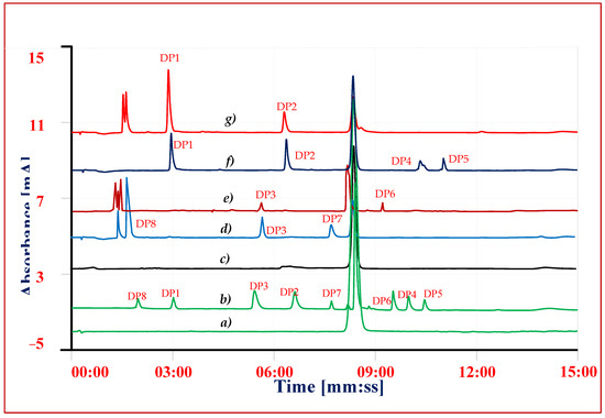 Chromatograms of forced degradation studies and reference standards (a) VEL reference standard (b) VEL composite reference standards, (c) VEL-CSD thermal study, (d) Acid degradation (e) Alkaline degradation, (f) Oxidative degradation (g) Photolytic degradation.