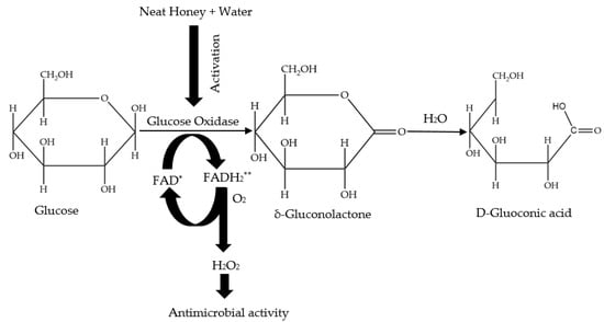 - Brudzynski, K.; Lannigan, R. Mechanism of Honey Bacteriostatic Action Against MRSA and VRE Involves Hydroxyl Radicals Generated from Honey’s Hydrogen Peroxide. Front. Microbiol. 2012, 3, 36. [Google Scholar] [CrossRef] [PubMed]