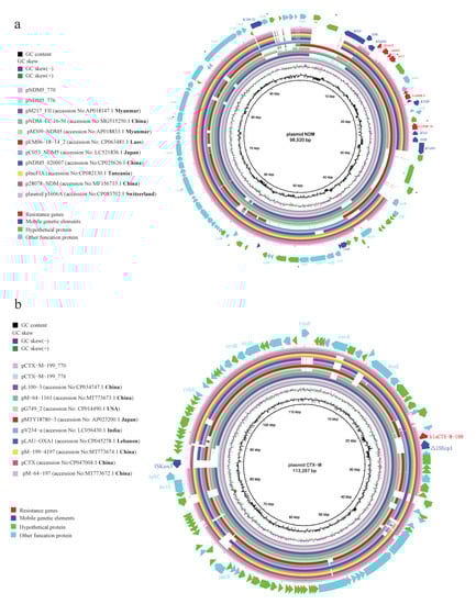 - Zhang, X.; Lou, D.; Xu, Y.; Shang, Y.; Li, D.; Huang, X.; Li, Y.; Hu, L.; Wang, L.; Yu, F. First identification of coexistence of blaNDM-1 and blaCMY-42 among Escherichia coli ST167 clinical isolates. BMC Microbiol. 2013, 13, 282. [Google Scholar] [CrossRef]