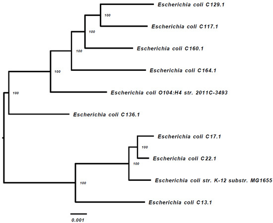 - Picard, B.; Garcia, J.S.; Gouriou, S.; Duriez, P.; Brahimi, N.; Bingen, E.; Elion, J.; Denamur, E. The Link between Phylogeny and Virulence InEscherichia Coli Extraintestinal Infection. Infect. Immun. 1999, 67, 546–553. [Google Scholar] [CrossRef] [Green Version]