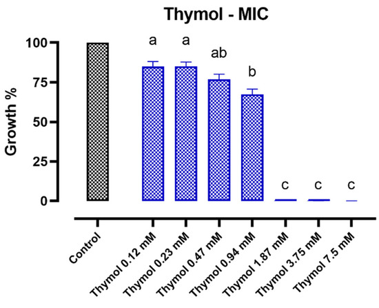 - Marchese, A.; Orhan, I.E.; Daglia, M.; Barbieri, R.; Di Lorenzo, A.; Nabavi, S.F.; Gortzi, O.; Izadi, M.; Nabavi, S.M. Antibacterial and Antifungal Activities of Thymol: A Brief Review of the Literature. Food Chem. 2016, 210, 402–414. [Google Scholar] [CrossRef]