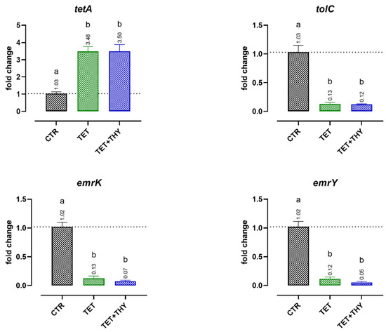 | Tetracyclines | tet(A), emrK, emrY, tolC | tet(A), emrK, emrY, tolC | |