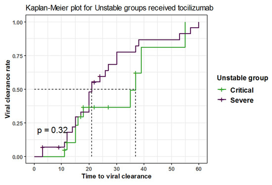 Kaplan–Meier plot for unstable groups receiving tocilizumab.