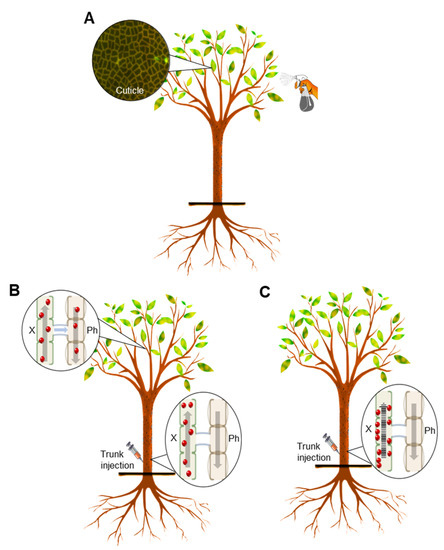 - Berger, C.; Laurent, F. Trunk injection of plant protection products to protect trees from pests and diseases. Crop Prot. 2019, 124, 104831. [Google Scholar] [CrossRef]