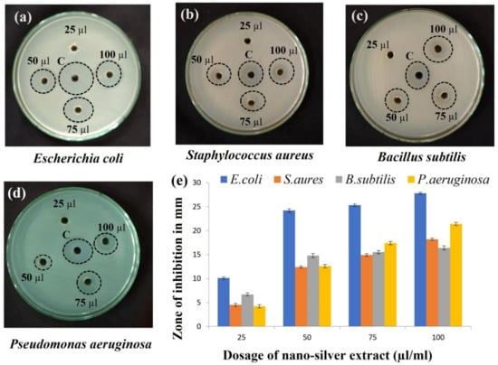 - Aparajita, V.; Mohan, S.M. Controllable synthesis of silver nanoparticles using Neem leaves and their antimicrobial activity. J. Radiat. Res. Appl. Sci. 2015, 45, 209–316. [Google Scholar]