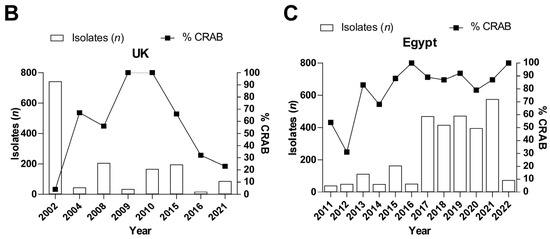 Elwakil WH, Rizk SS, El-Halawany AM, Rateb ME, Attia AS. Multidrug-Resistant Acinetobacter baumannii Infections in the United Kingdom versus Egypt: Trends and Potential Natural Products Solutions. Antibiotics. 2023; 12(1):77. https://doi.org/10.3390/antibiotics12010077