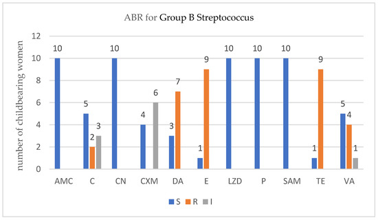 In the childbearing women group that were positive for Group B Streptococcus, four VR-GBS strains were detected. Again, no association was found between the number of ABR and the VR-GBS, p = 0.2090 (Fisher’s exact test).