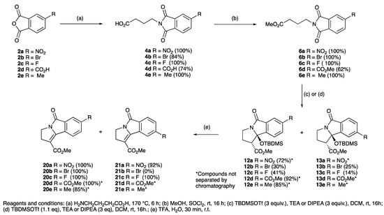 - Ibbotson, L.T.; Christensen, K.E.; Genov, M.; Pretsch, A.; Pretsch, D.; Moloney, M.G. Skeletal Analogues of UCS1025A and B by Cyclization of Maleimides: Synthesis and Biological Activity. Synlett 2022, 33, 396–400. [Google Scholar] [CrossRef]