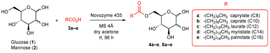 Synthesis of 6-O-Glucose and 6-O-Mannose Esters (5a–e), Catalyzed by Novozyme 435.