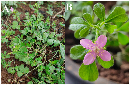 Cleome felina plant: (A) Plant habitat, (B) Plant with flower.