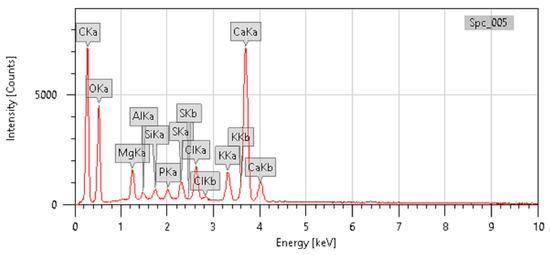 EDX chromatogram of C. felina leaves indicating elemental peaks.