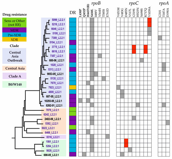 - Merker, M.; Barbier, M.; Cox, H.; Rasigade, J.P.; Feuerriegel, S.; Kohl, T.A.; Diel, R.; Borrell, S.; Gagneux, S.; Nikolayevskyy, V.; et al. Compensatory evolution drives multidrug-resistant tuberculosis in Central Asia. eLife 2018, 7, e38200. [Google Scholar] [CrossRef] [PubMed]