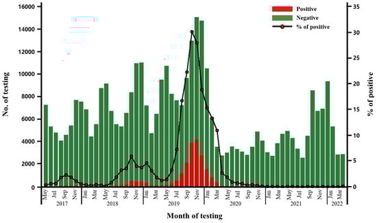 Five-year accumulated respiratory bacteria/virus panel tests result from May 2017 to April 2022.