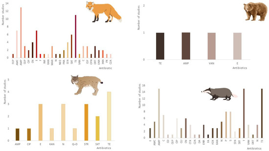 Unfortunately, not all European carnivore species are represented in this review, as no data are available for some of them [62]. This article’s main limitation is that it does not allow a realistic comparison between different species. This demonstrates that it is necessary to collect more data on other species and in different regions, in the long term, to compare the impact that the use and abuse of antibiotics have on these animals.