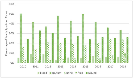 | Year | Blood | Sputum | Urine | Wound |