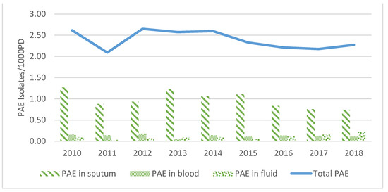 - Álvarez-Lerma, F.; Olaechea-Astigarraga, P.; Gimeno, R.; Catalan, M.; Nuvials, X.; Gracia-Arnilla, M.P.; Palomar-Martínez, M.; Seijas-Betolaza, I.; Martínez-Alonso, M. ENVIN-HELICS Study Group Changes of Resistance Rates in Pseudomonas Aeruginosa Strains Are Unrelated to Antimicrobial Consumption in ICU Populations with Invasive Device-Related Infection. Med. Intensiv. (Engl. Ed.) 2020, 44, 399–408. [Google Scholar] [CrossRef]