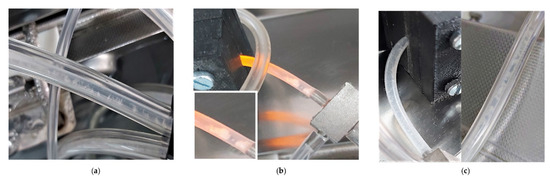 When compared to a variety of other pure culture and mixed community biofilms from previous studies by the authors, these Listeria biofilms had a distinct feature reminiscent of a tumbleweed plant in that it accumulated as clusters, visible to the unaided eye, that periodically moved downstream (Figure 6). It is possible that these clusters consist primarily of a diffuse extracellular matrix with relatively few cells, which may be a survival mechanism where these cells survive in a viable but nonculturable state, with only metabolic maintenance at play. This may be an explanation for the data shown in Figure 3h, where CO2 production remained below detection after PAA treatment (deviating from the comparable trends between biofilm biomass and metabolic activity at the lower PAA dosages), accompanied by a steady decline of biofilm biomass and zero release of cultivable cells that would suggest that there were no surviving cells in the biofilms. However, as shown by Bester et al. [25], biofilms accumulate sufficient storage reserves to be able to release 105 to 106 CFU.mL−1 planktonic cells during an 8-day starvation period without exogenous carbon supply. Similar to the data in Figure 3h, the starved biofilms in the Bester et al. study produced no measurable CO2 during the starvation period. The mobile clusters observed in the present study may have the same function, which may contribute to Listeria’s survival success in persisting in food processing and other facilities, where it presents a serious challenge to quality control.