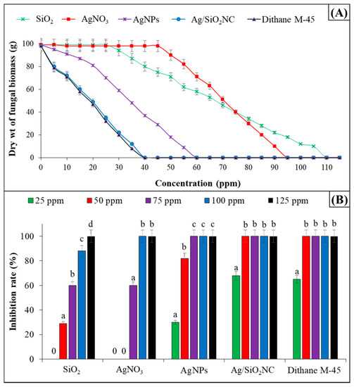 - Baka, Z.A.; El-Zahed, M.M. Antifungal activity of silver/silicon dioxide nanocomposite on the response of faba bean plants (Vicia faba L.) infected by Botrytis cinerea. Bioresour. Bioprocess. 2022, 9, 102. [Google Scholar] [CrossRef]