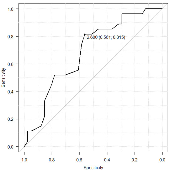 Receiver operating characteristic (ROC) curve between serum albumin level before LZD treatment and hyponatremia.