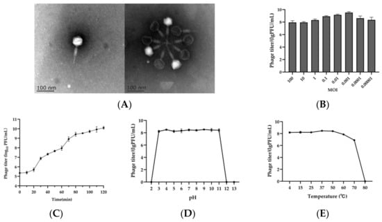 2.1. Isolation of Phage SPJ41 and Its Morphology