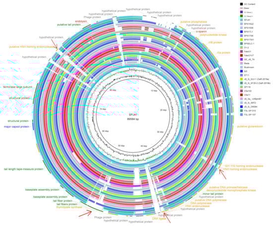 4.8. Phage SPJ41 Genome Sequencing, Annotation, and Comparison