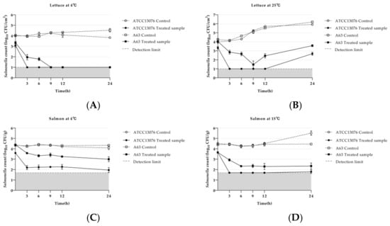 2.9. Phage SPJ41 Biological Control of Salmonella in Two Ready-to-Eat Foods