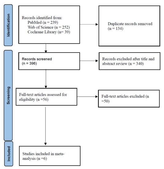 Figure 1. Flow diagram of the study selection process. Six studies were included in the meta-analysis, including one randomized controlled trial, five retrospective observational studies.