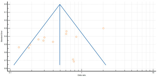 Data analyses were carried out using MedCalc v20.211 statistical software [40]. Odds ratios were selected to describe the ratio of odds in the treatment group to the odds of the control group. The heterogeneity among the studies was checked using Cochrane’s Q [41] and the I2 statistical tests [42,43]. The model of random effects was adopted for the analysis.
