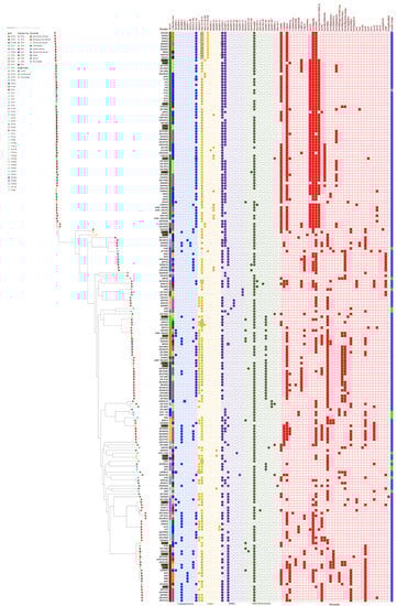 Publicly available genome sequences of MDR Kp (n = 187) deposited from India were downloaded from the PATRIC database (https://www.patricbrc.org/, accessed on 25 September 2021). To access genomes deposited from India with antimicrobial resistance properties, filters such as ‘India’, ‘Antimicrobial resistance’, and ‘Genome quality: good’ were used. Recently, in December 2022, this database was merged with the Bacterial and Viral Bioinformatics Resource Center (https://www.bv-brc.org/, accessed on 8 February 2023). The sequences in FASTA format, which were previously assembled and had good quality, were retrieved and used for the combination analysis with our samples. Strains’ information such as collection year, geographic location, sample origin, and host health for each genome was also collected from PATRIC.