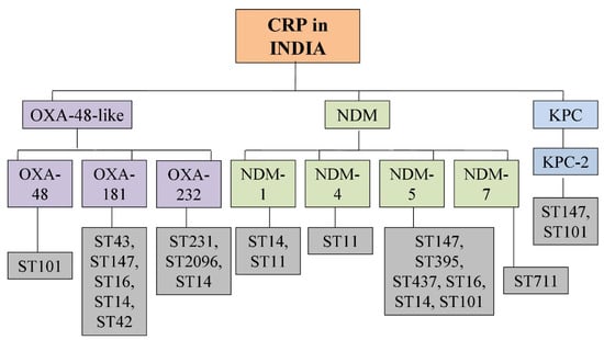 Distribution of carbapenemase genes circulating in India. CRP—carbapenem-resistant pattern.