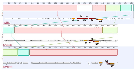The graphical representation of the general structures and of the genetic regions of the cfr-carrying plasmid of isolate ID 21554/1 as well as the comparison with selected already-deposited plasmid sequences were performed using Geneious Prime 2023.0.1 and the Mauve algorithm for the alignment [52].