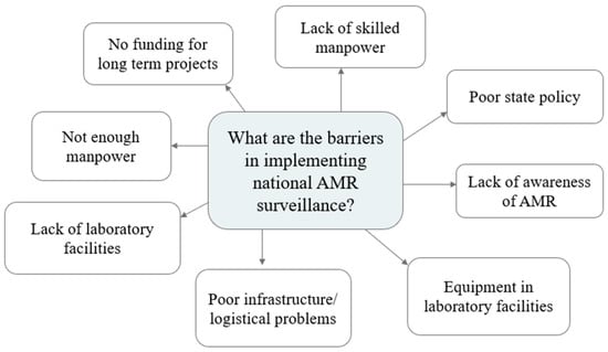 Various barriers in implementing national AMR surveillance.