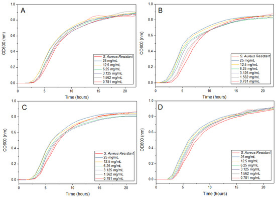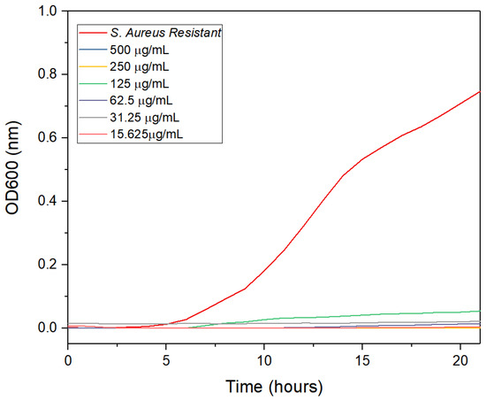 | [7] | S. aureus ATCC 6538 | AgNPs | 125 | Gardenia jasminoides leaves |