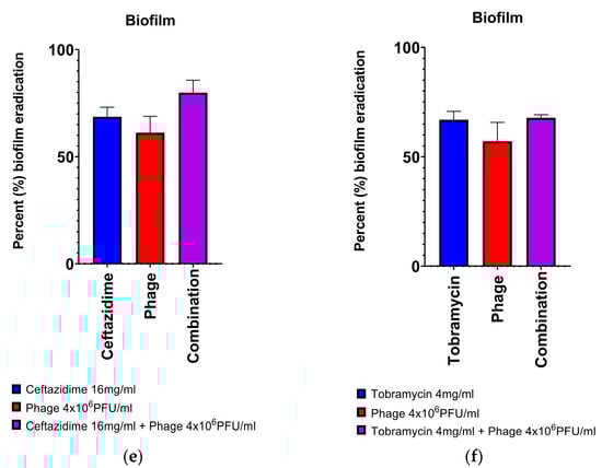 The addition of phages enhanced the anti-biofilm efficacy of a fixed ceftazidime (CTZ)—tobramycin (TOB) combination across clinical strains (Figure 2).
