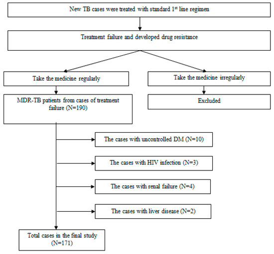Comorbid conditions associated with malabsorption was also reported to be risk factor for drug resistance [24,29]. In HIV disease, the small intestine is frequently impacted either by opportunistic enteric infections that cause intestinal dysfunction or by the HIV virus itself, which causes malabsorption of the majority of nutrients [37,38]. TB patients with HIV that are commonly with malabsorption have been excluded in this study to avoid biased results. This study found that 42 (24.6%) patients experienced adverse event causing vomiting anti-TB drugs and 70 (40.9%) patients with DM (Table 1). ADRs to first-line anti-TB drugs are common. Moreover, these ADRs result in interruption or revision of the anti-TB treatment that could cause treatment failure and mortality in TB patients [39]. In this study, the occurrence of adverse effects did not lead to discontinuation of treatment. TB patients with uncontrolled DM have a higher risk of treatment failure and TB drug resistance [26,40]. Patients with uncontrolled DM have been excluded in this study to avoid biased results.