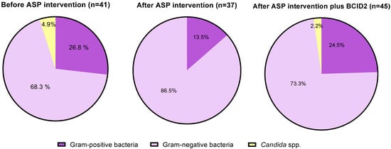 | Parameter | Before ASP Intervention | After ASP Intervention | After ASP Intervention Plus BCID2 | |