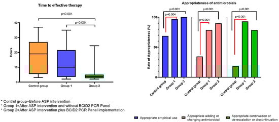 | Appropriate empirical use | 22/32 (68.7%) | 29/30 (96.7%) b | 31/31 (100%) b | <0.001 |