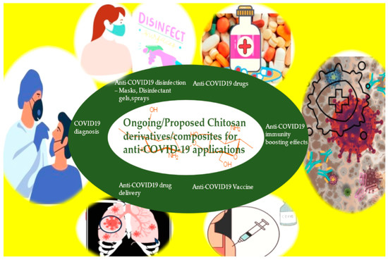 Anti-COVID 19 applications of chitosan composites/derivatives.