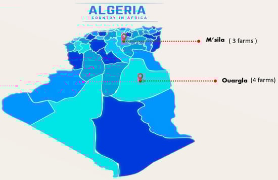 Sample collection sites. (In the centre of Algeria: M’sila, in the south of Algeria: Ouargla).