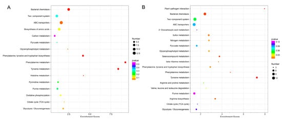 Top 20 DEGs of KEGG pathway enrichment. (A) Res 50 vs. Res 0 groups. (B) Res 100 vs. Res 0 groups.