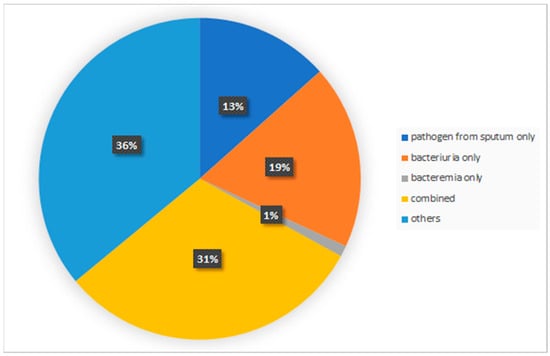 Proportions of post-stroke infection accounted for by positive culture results, where cases in which two or more positive pathogens from respiratory, genitourinary or blood samples tested positive were categorized as “combined.” In contrast, positive pathogens from other sources with elevated white blood cell counts with records of intravenous antibiotic treatment and were categorized as “others”.